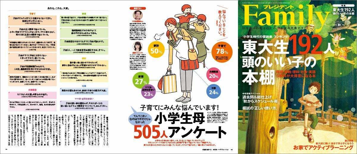 『プレジデントFamily2018秋号』の「子育てにみんな悩んでいます! 小学生母505人アンケート」より