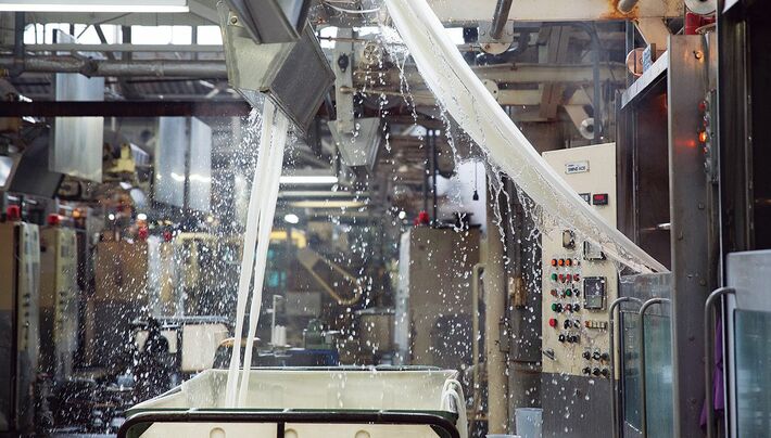 大量の水が使用される生地の加工工場。濃尾平野を流れる木曽川などから引かれる地下水をくみ上げ、使用できる環境だからこそ、「尾州」で毛織物産業が発展した。