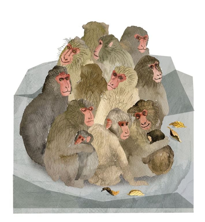 ニホンザル版“おしくらまんじゅう”(画像=『春・夏・秋・冬 どうぶつえん』)