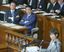 2018年10月29日、衆院本会議で自民党の稲田朋美筆頭副幹事長(手前)の代表質問を聞く安倍晋三首相と麻生太郎副総理兼財務相(写真=時事通信フォト)