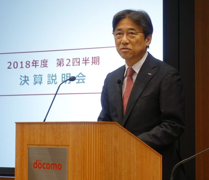 2018年10月31日、NTTドコモの吉沢和弘社長は利用料金を2~4割程度引き下げると発表した(写真=時事通信フォト)