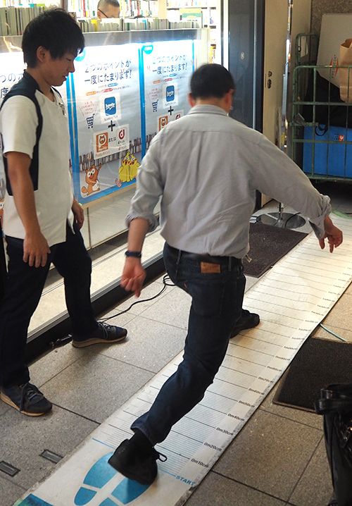 「ロコモ度テスト」を体験する丸の内のビジネスパーソン(撮影=プレジデント社書籍編集部)