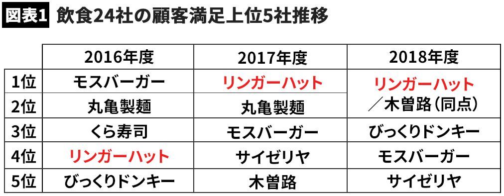 (図表1)リンガーハットは2年連続1位となった(画像=小倉高宏)