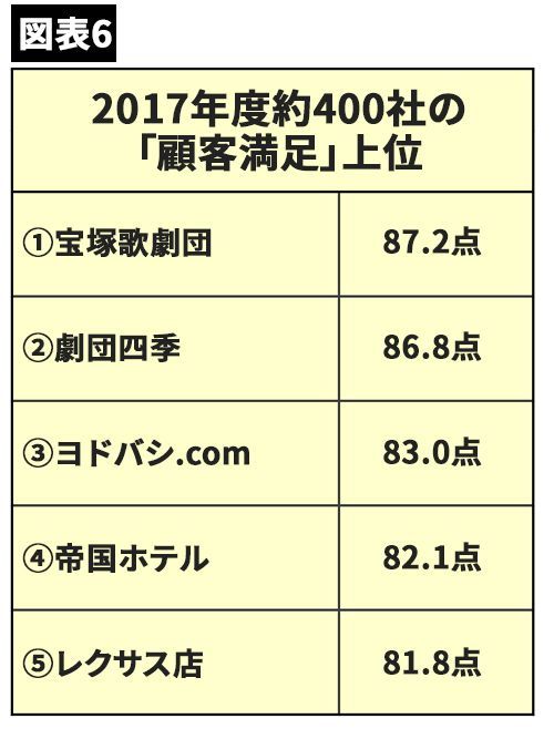 (図表6)85.2点を上回るのは、宝塚歌劇団と劇団四季だ(画像=小倉高宏氏提供画像をもとにプレジデントオンライン編集部作成)