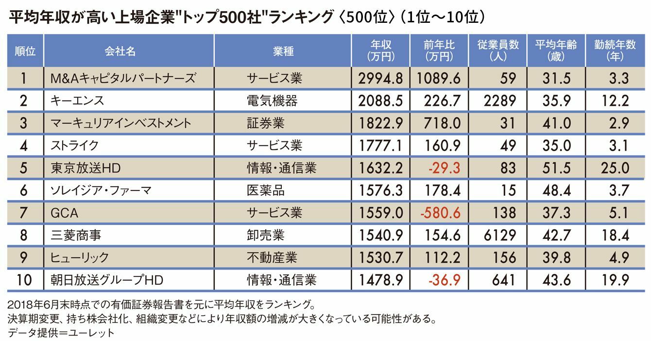 平均年収が高い"トップ500社"ランキング