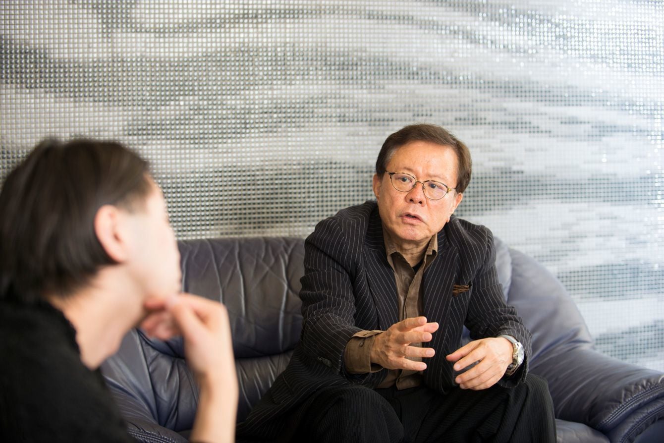 落合陽一氏(左)と対談する猪瀬直樹氏(右)。