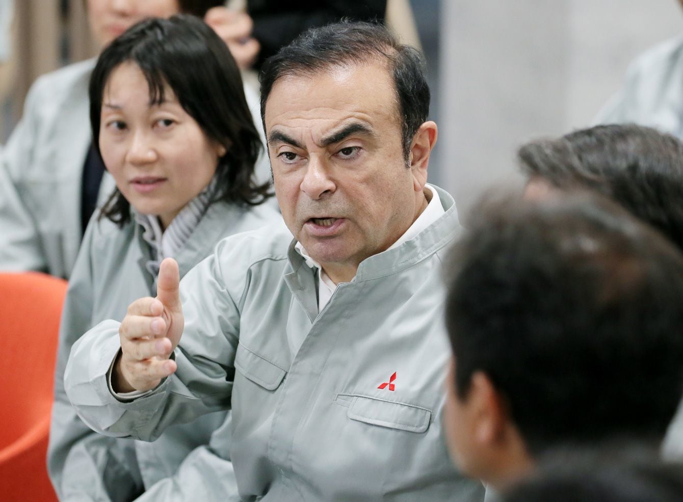 2017年5月19日、三菱自動車岡崎製作所と隣接する研究開発拠点を初めて視察し、アドバイスするカルロス・ゴーン会長(写真=時事通信フォト)