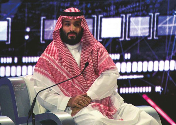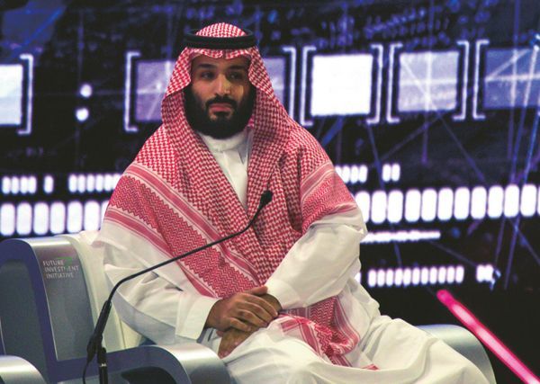 サウジで開催された投資会議「未来投資イニシアチブ」に出席するムハンマド皇太子(2018年10月24日)。(AFLO=写真)