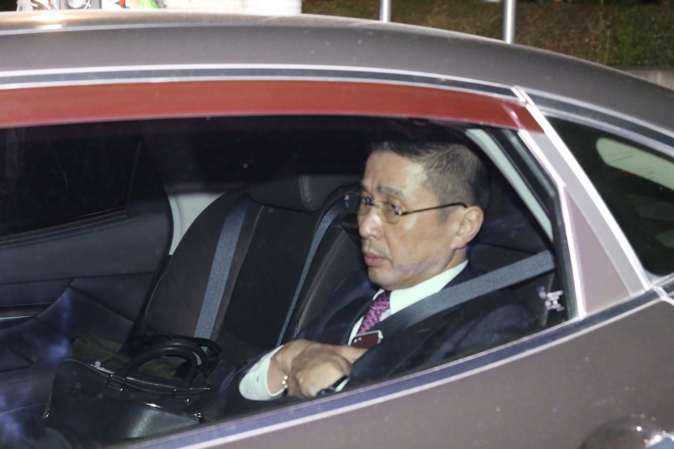 2018年11月22日、臨時取締役会終了後、日産自動車本社を出る西川広人社長。(写真=時事通信フォト)