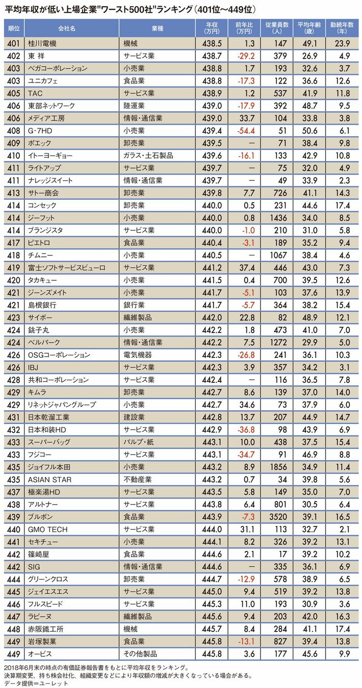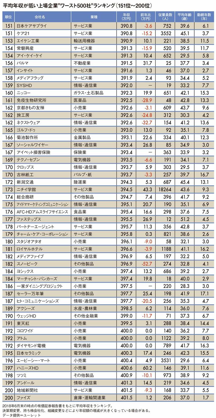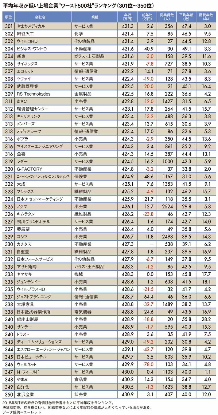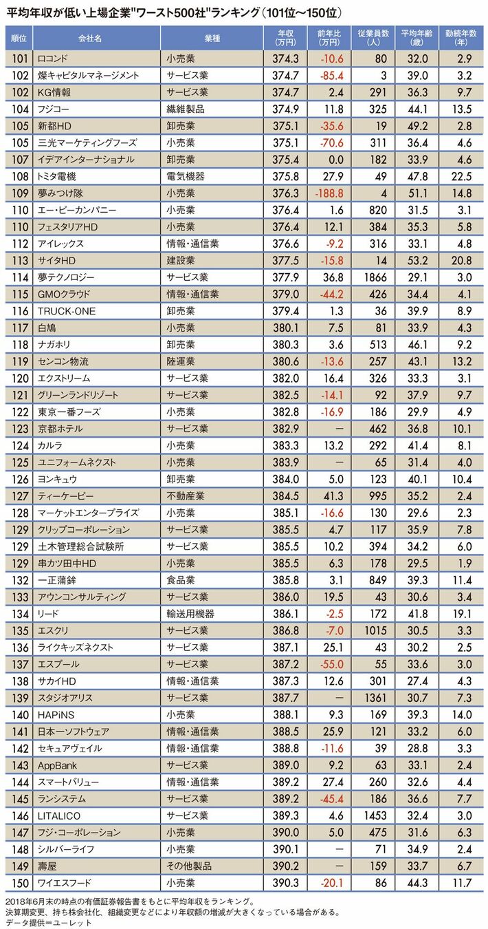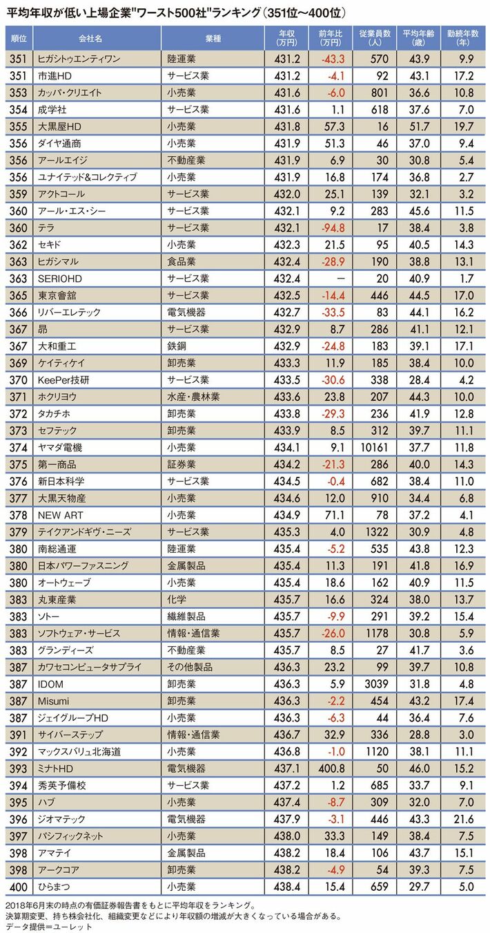 平均年収が低いワースト500社ランキング