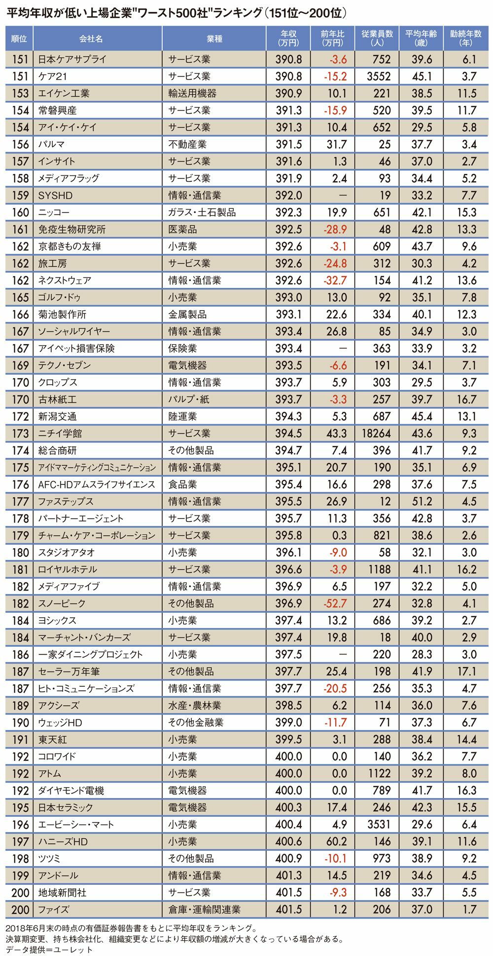 平均年収が低いワースト500社ランキング