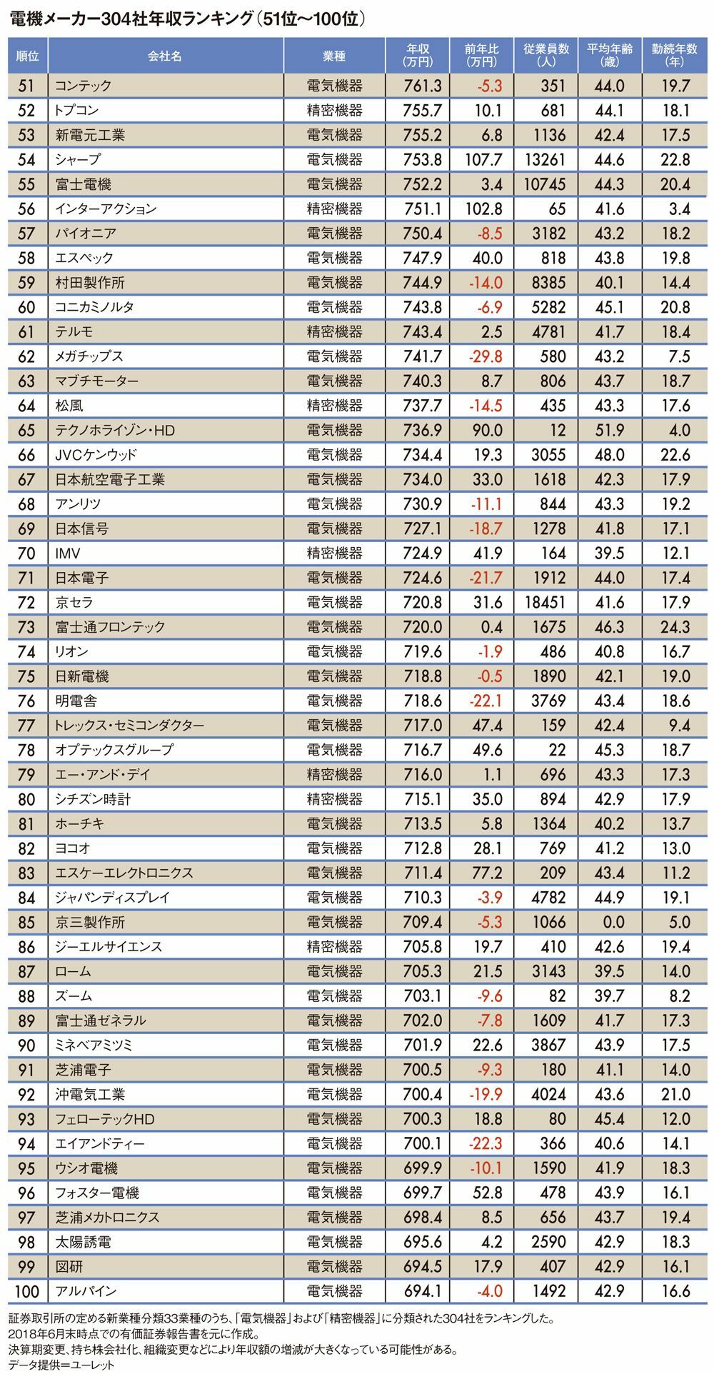 電機業界全304社「平均年収ランキング」