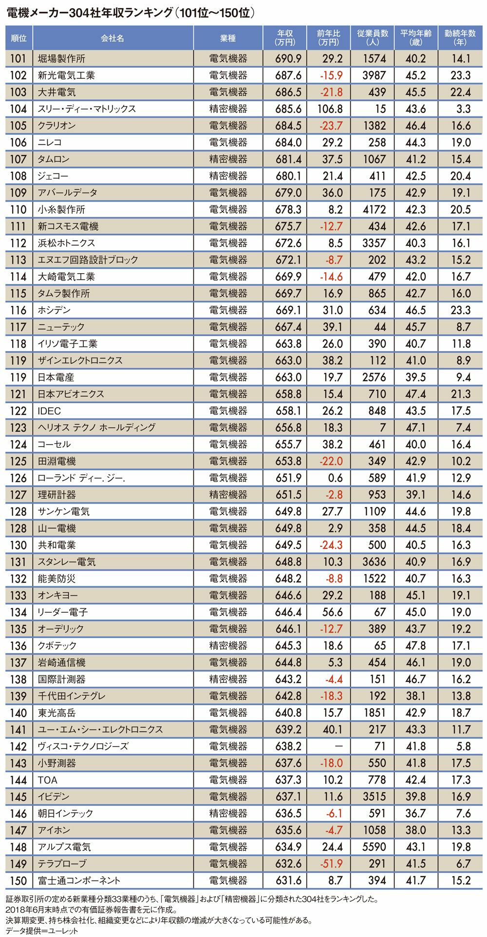 電機業界全304社「平均年収ランキング」