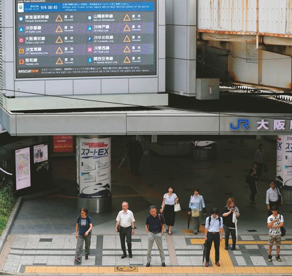 9月、台風21号の接近に伴う計画運休で閑散とするJR大阪駅。(時事通信=写真)