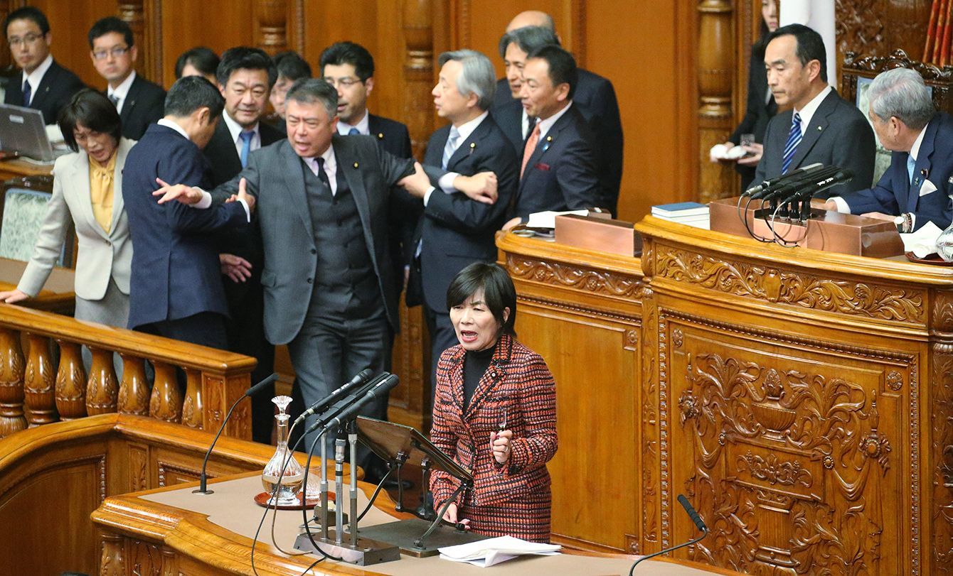 2018年12月7日、参院本会議で堂故茂農林水産委員長の解任決議案の趣旨説明をする自由党の森裕子幹事長。(写真=時事通信フォト)