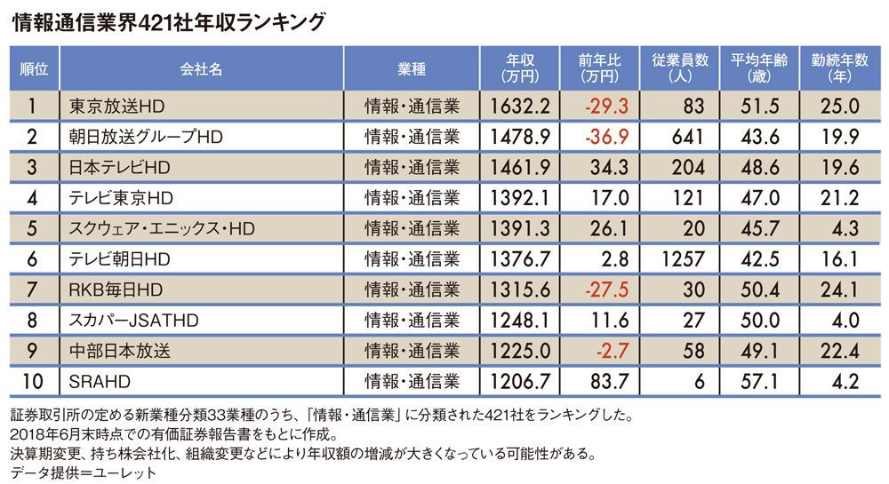 情報・通信421社「平均年収ランキング」