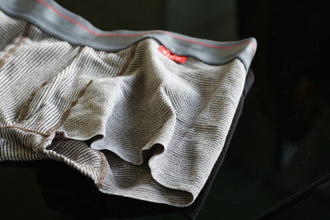 「包帯パンツ」の特徴はウエストゴムの締めつけを感じさせないこと。写真は開発した生地をウエストゴムに使った「HOUTAI BELT(ホウタイベルト)」(税込4104円)
