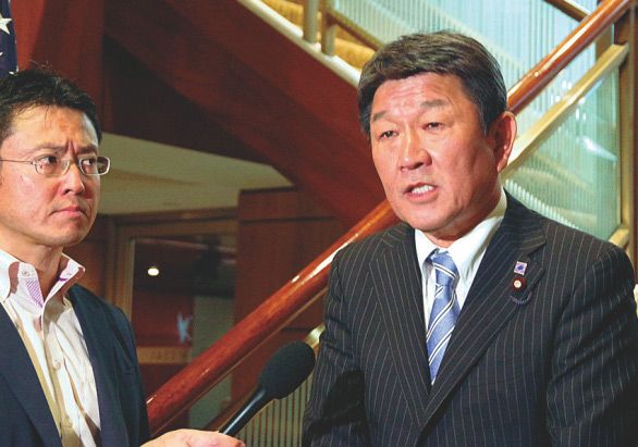 TAGの交渉入り合意について説明する茂木敏充経済再生担当相(2018年9月26日)。(時事通信フォト=写真)
