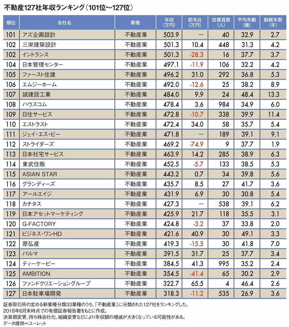 不動産業界127社「平均年収ランキング」