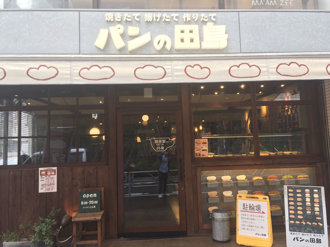 「焼きたて 揚げたて 作りたて」をうたうパンの田島の看板(編集部撮影)