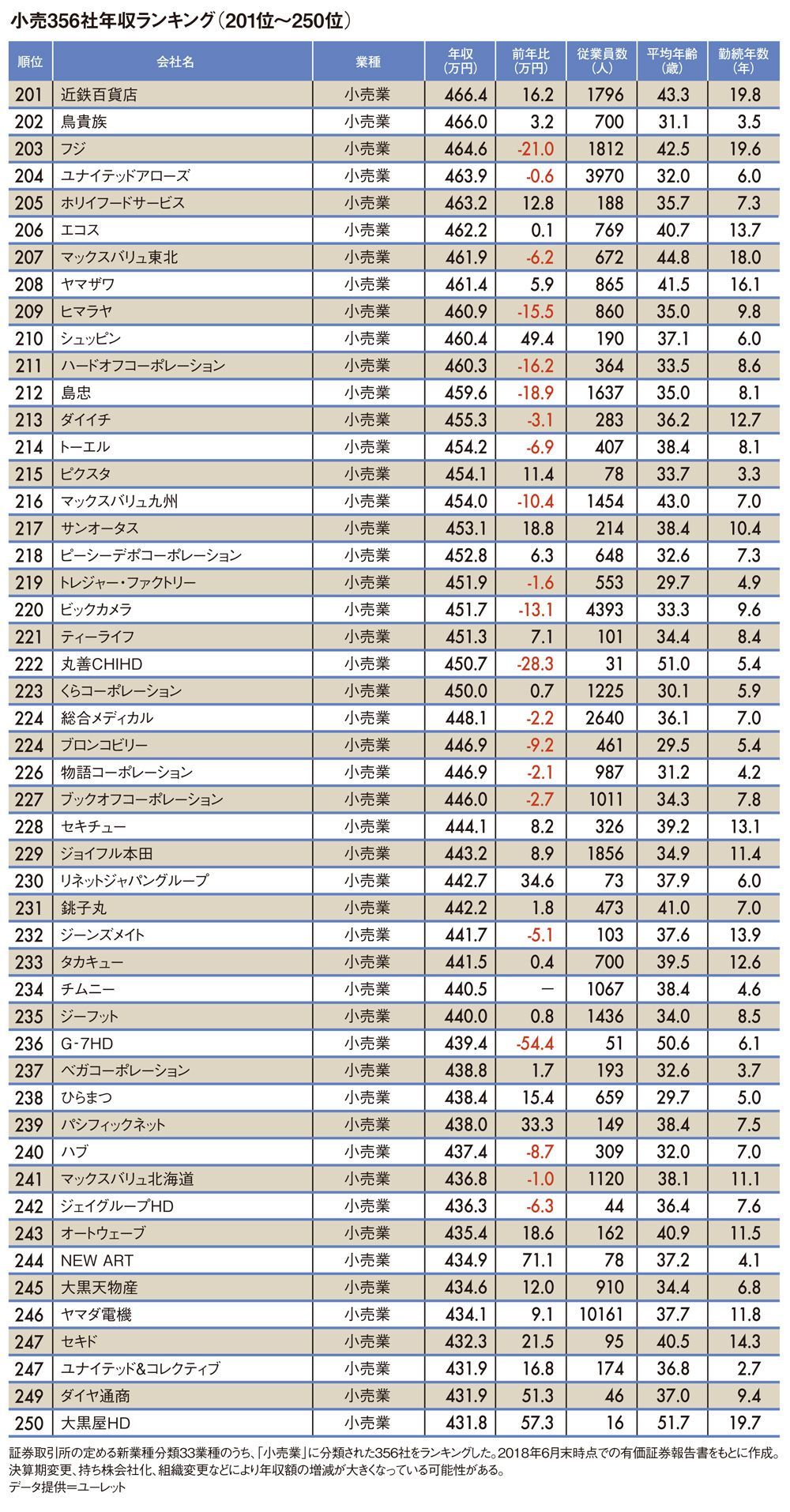 小売業界356社「平均年収ランキング」