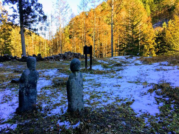 現在の若澤寺跡。石仏が2体だけ残っていた。(写真=鵜飼秀徳)