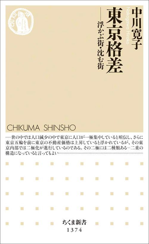 中川寛子『東京格差 浮かぶ街・沈む街』(ちくま新書)