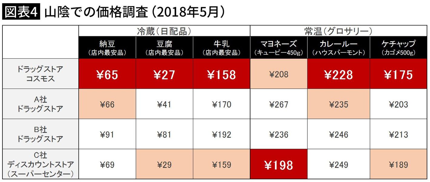 (図表4)ほぼすべての商品でコスモスが最安値(画像=小倉高宏)