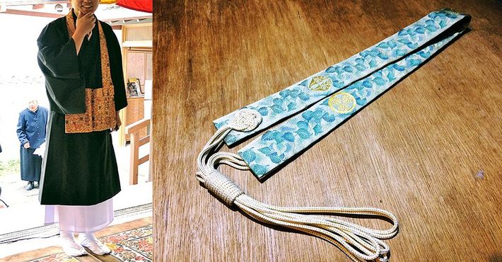 (左)改良服に威儀細、(右)和袈裟