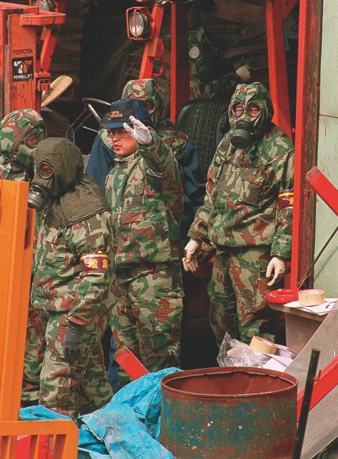 オウム真理教事件では5日間不眠不休でサリンの原料を押収、撤去した(写真中央)。(産経新聞社=写真)