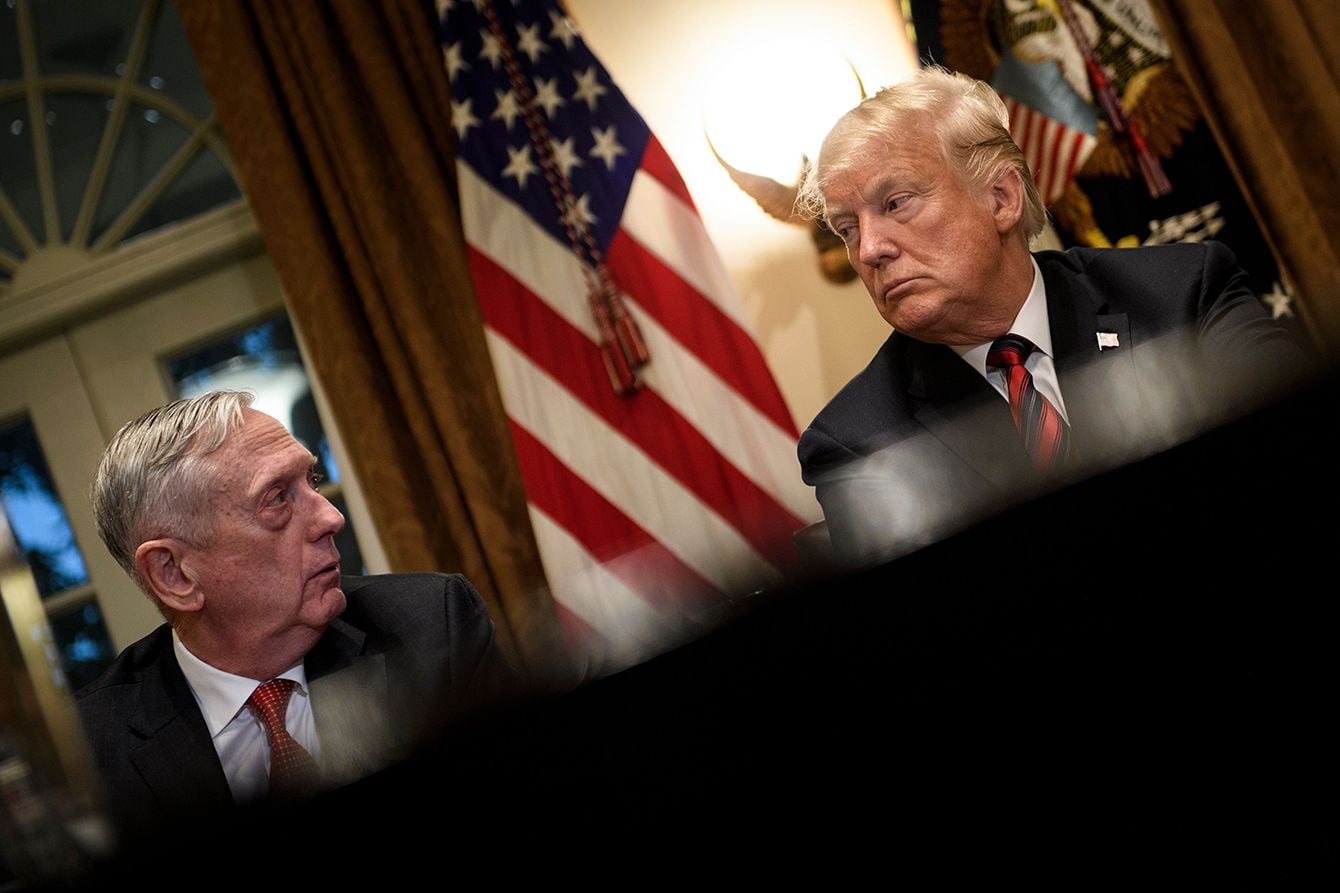 昨年限りでたもとを分かったマティス前国防長官(左)とトランプ大統領(写真=AFP/時事通信フォト)