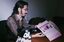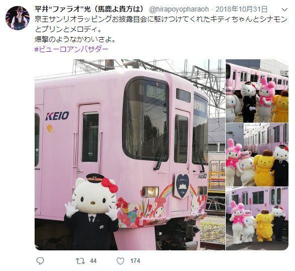 キティちゃんと撮影した写真を見返して微笑むファラオさん