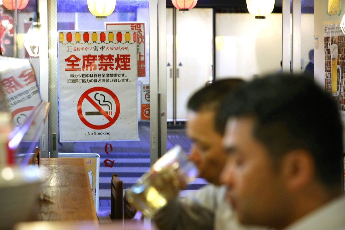 全席禁煙に踏み切った居酒屋チェーン店、串カツ田中の赤坂店(東京・港)。(写真=時事通信フォト)