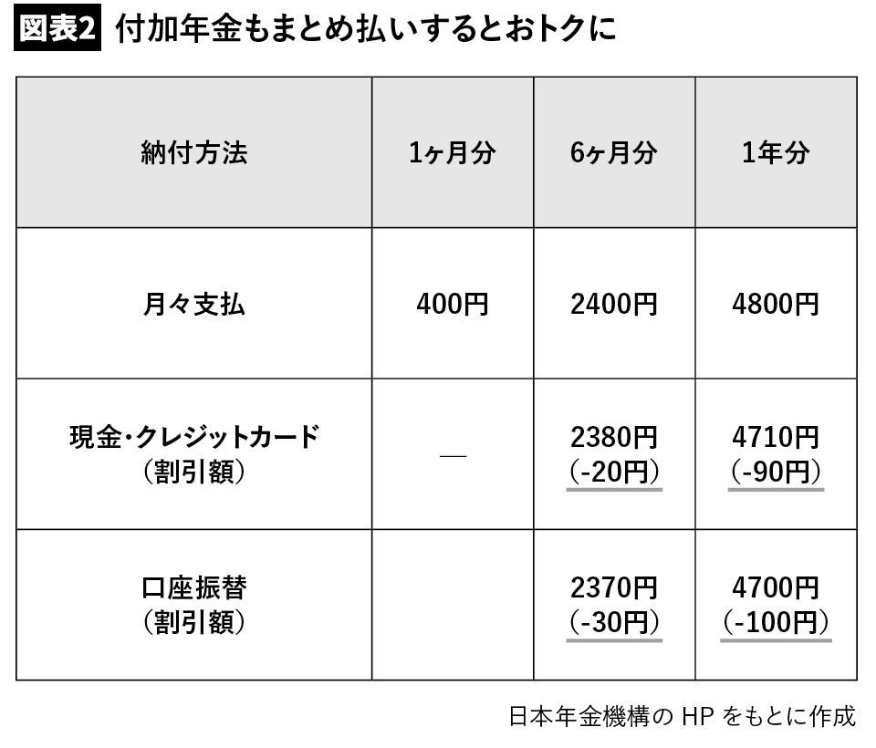 図表2:口座振替で1年払いにすると100円引きになる(画像=『年金だけでも暮らせます』)