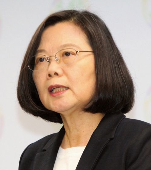 台湾統一地方選挙で大敗し、民進党党首辞任を発表する蔡英文総統(2018年11月24日)。(AFLO=写真)