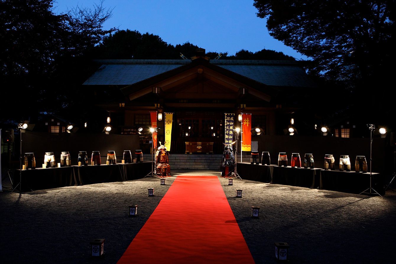 東京・原宿の東郷神社で開催された展示会「包帯の陣」。甲冑パンツを大々的に発表した