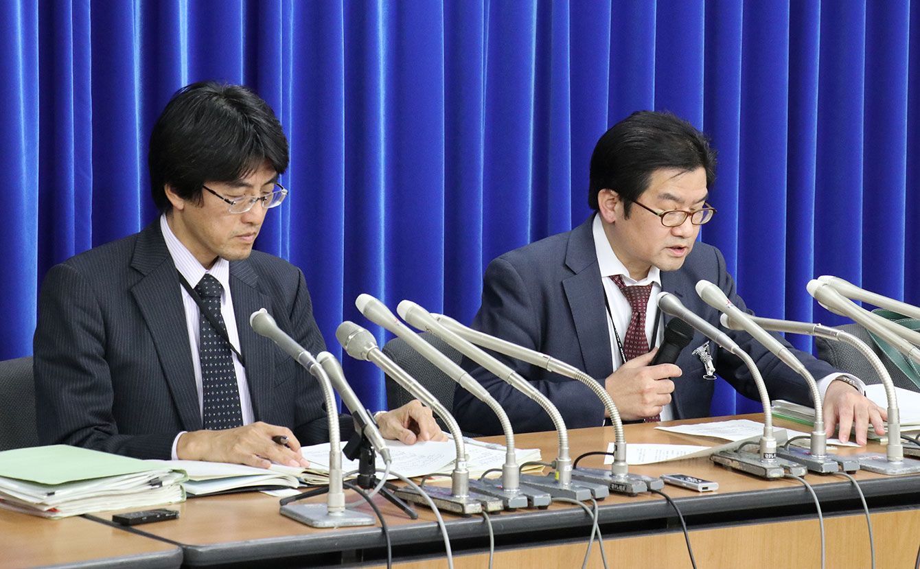 2019年2月1日、賃金構造基本統計の不正の報告が遅れた理由について、記者会見で説明する厚生労働省の担当者。(写真=時事通信フォト)