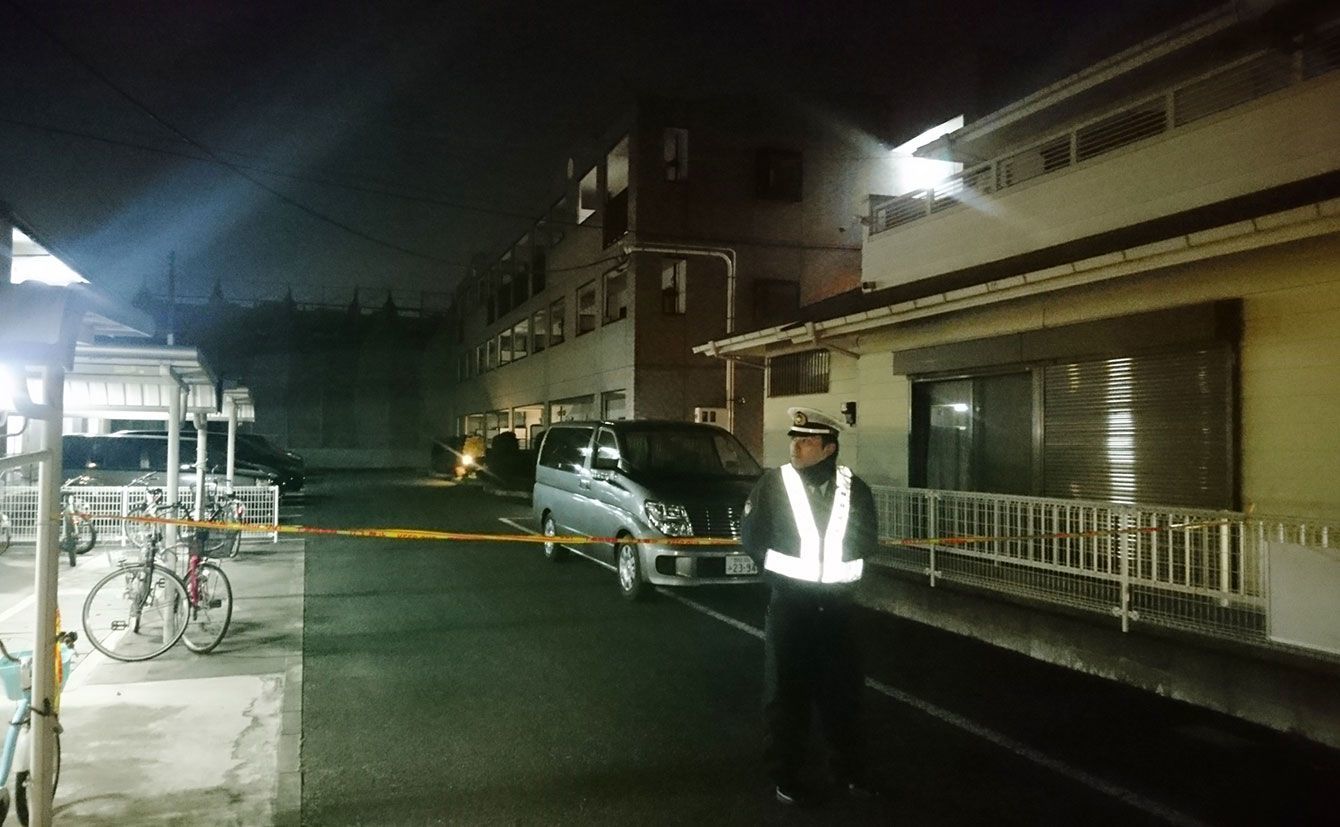 栗原心愛さんの遺体が見つかったマンション(中央奥)=1月25日午後、千葉県野田市(撮影=時事通信フォト)