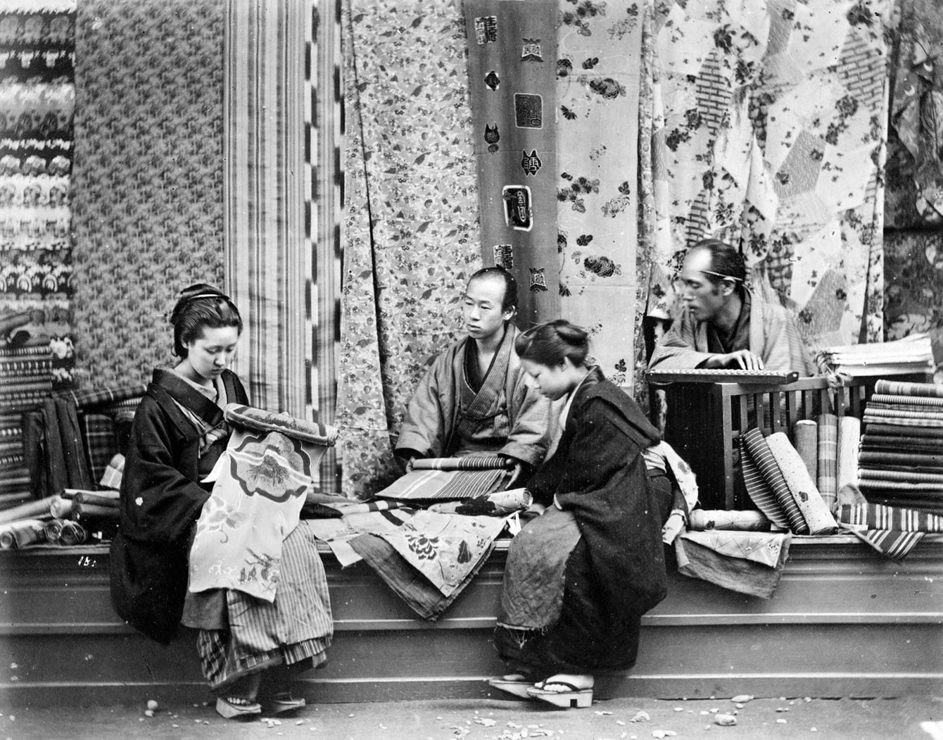 明治初期に撮影された呉服屋の様子(画像=『江戸暮らしの内側 快適で平和に生きる知恵』)