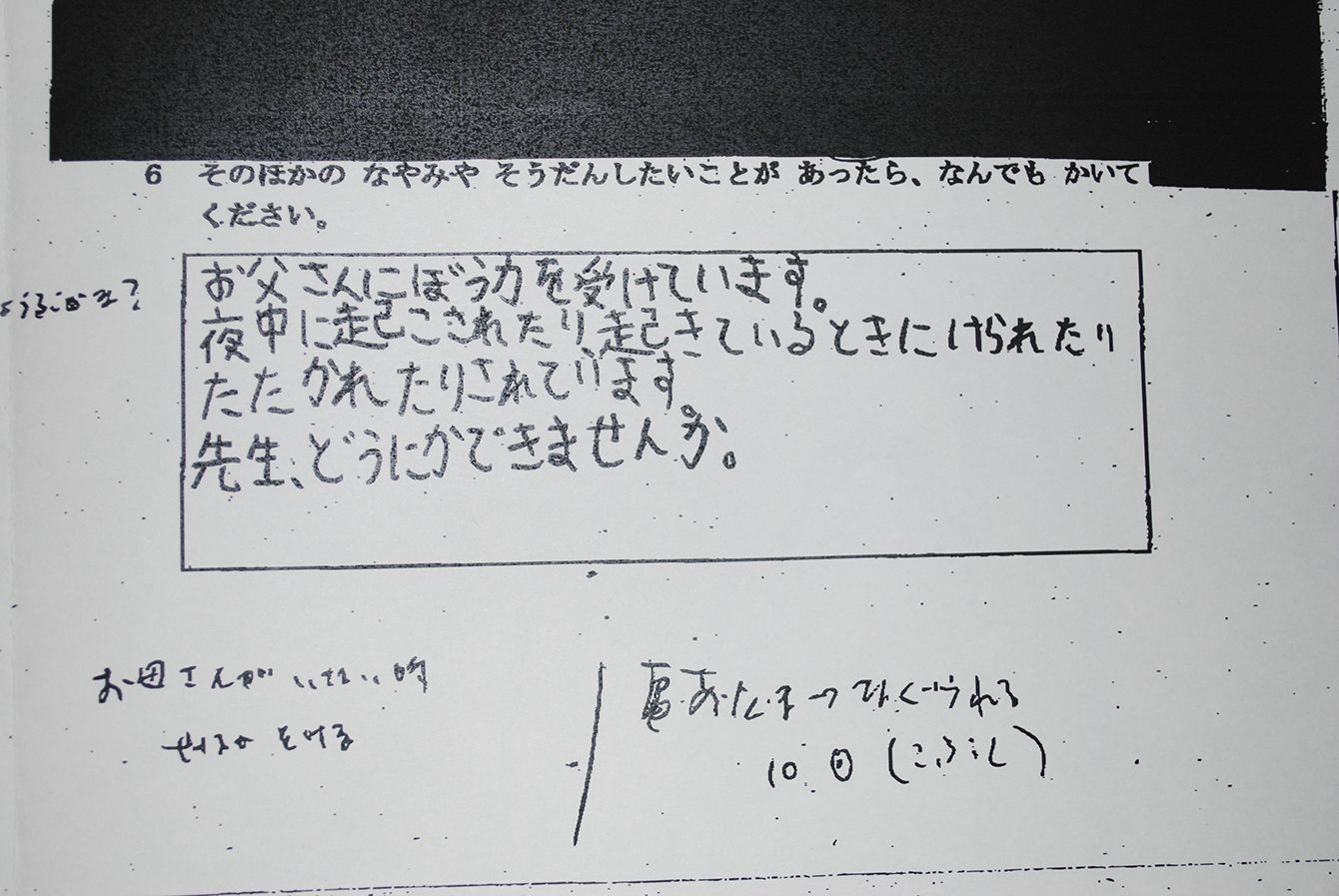 2019年2月2日、千葉県野田市が公表した、死亡した小学4年栗原心愛さんが父からの暴力を訴えた学校のアンケート(写真=時事通信フォト)