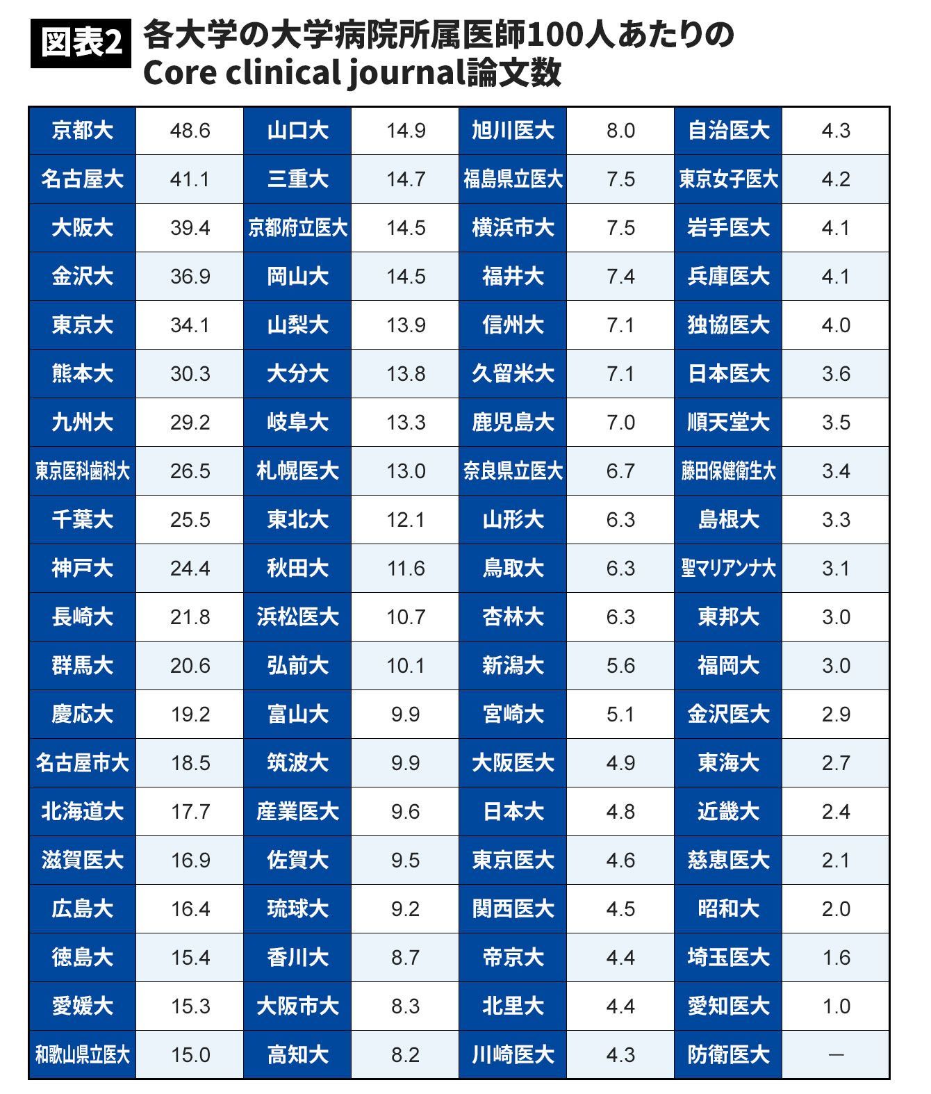 各大学の臨床研究の生産性比較(画像=上昌広)