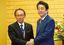 首相官邸で会談する玉城沖縄知事と安倍首相(2018年10月12日)。(AFLO=写真)
