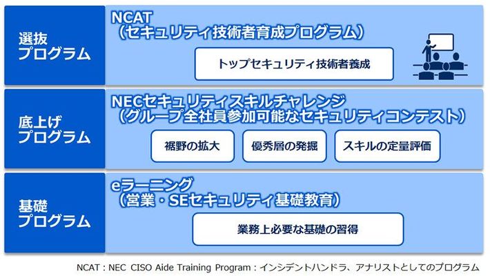 NECのサイバーセキュリティ人材育成プログラムの例。役割とレベルに合わせてデザインされている。