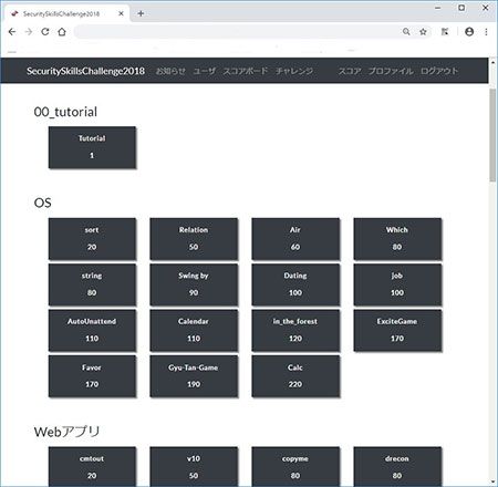 実際の「NECセキュリティスキルチャレンジ」の画面例。多岐にわたる分野が網羅され、内容はいずれも実践的だ。