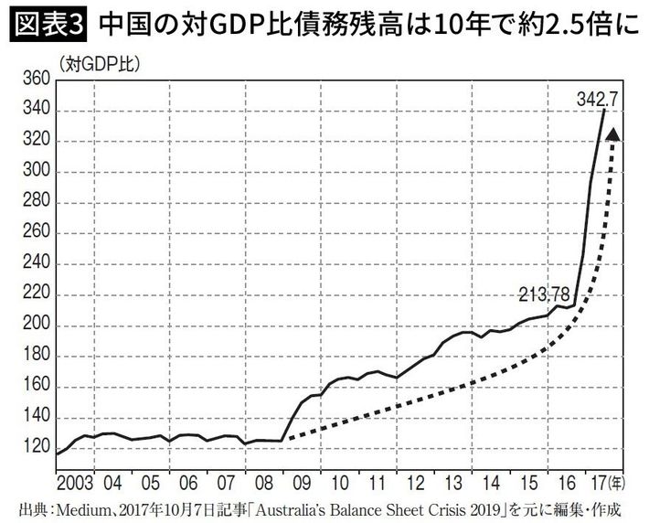 図表3:対GDP比債務残高は2017年に300%を上回った(画像=『お金の流れで読む 日本と世界の未来』より)