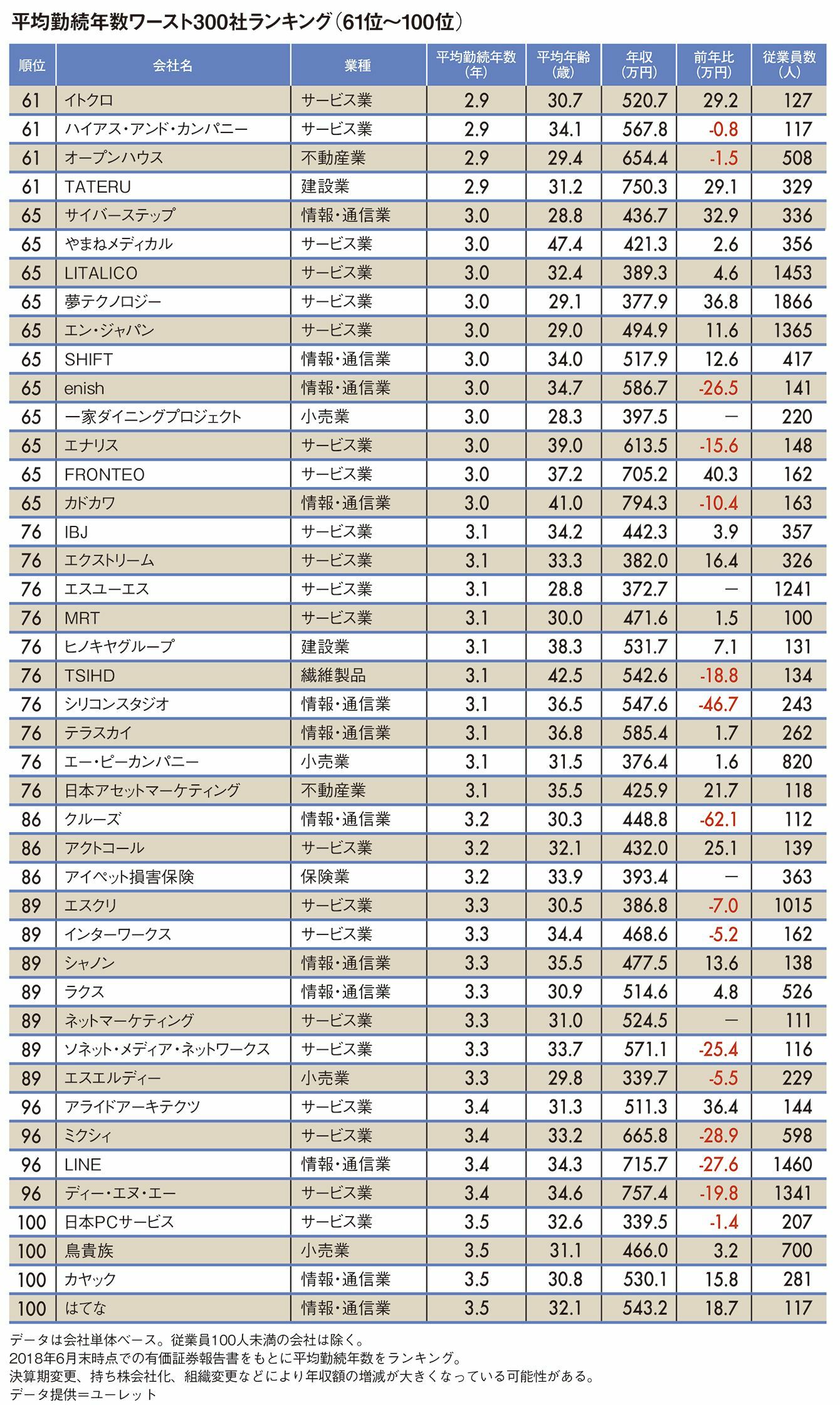 平均勤続年数"ワースト300社"ランキング