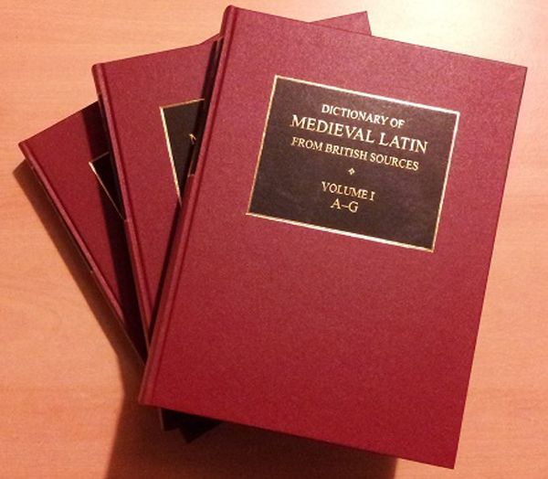 英国学士院が100年の年月をかけて完成させた中世ラテン語辞書。全3巻、4100ページ。オックスフォード大学出版局刊(写真提供=DMLBS)