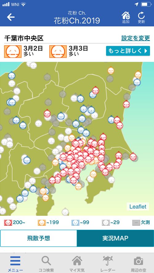 アプリ「ウェザーニュースタッチ」の「花粉Ch.」のイメージ図(画像提供=ウェザーニューズ)