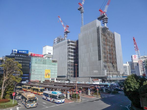横浜駅西口の駅前広場と建設中の「JR横浜タワー」(撮影=鳴海行人)