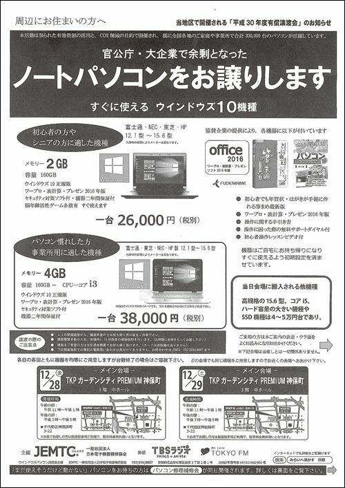 譲渡会会場では、中高年の客が我先にとPCに飛びつく様子が多数確認できた。展示機はごく少数で、客数を考えれば人だかりができるのは当たり前なのだが……。「それも作戦のうちかもしれませんね」(建部氏)。
